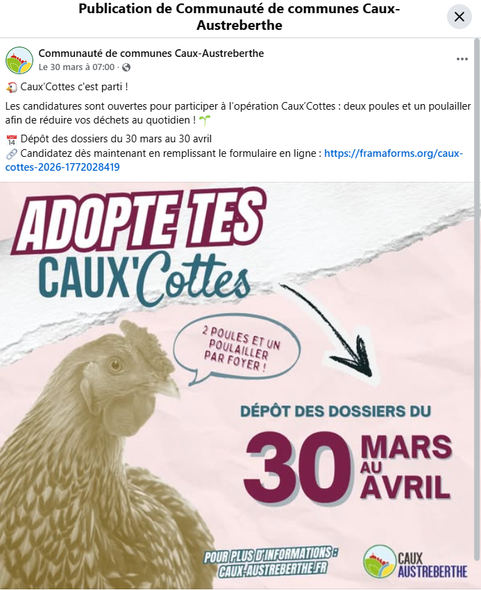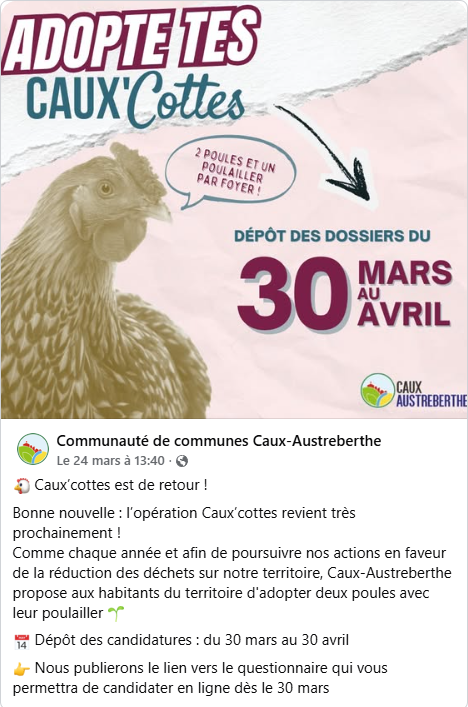 Communication FB : (5) 🐔 Caux’cottes est de... - Communauté de communes Caux-Austreberthe | Facebook
